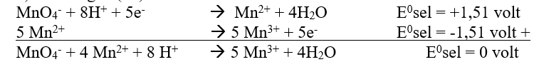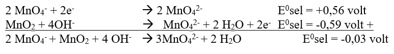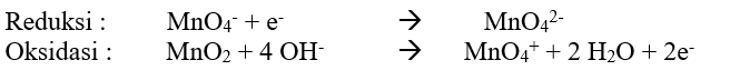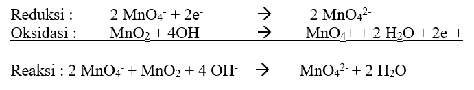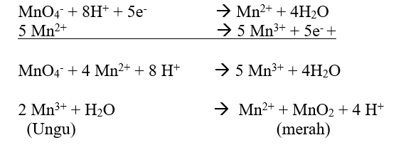 - Perubahan bilangan oksidasi untuk warna ungu +7, warna ungu ke hijau bilangan oksidasi +6 dan dari warna hijau ke coklat bilangan oksidasi +3.