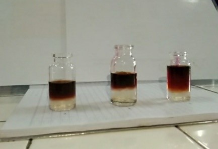 - Ulangi perlakuan tersebut dengan variasi NaOH dan Glukosa masing-masing sebanyak 2 mL, 4 mL, dan 6 mL.
