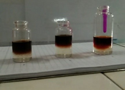 - Ditambahkan larutan KMnO4 dalam masing-masing wadah sebanyak 2 mL, 4 mL, 6 mL dan amati perubahan warna yang terjadi.